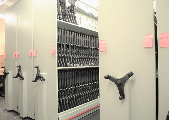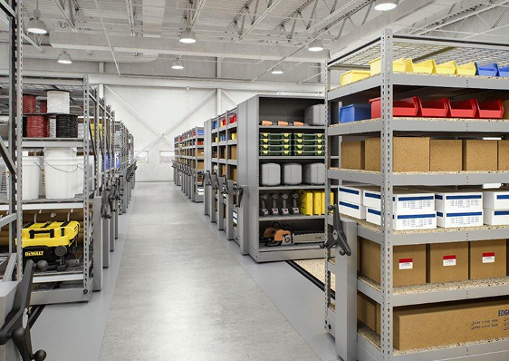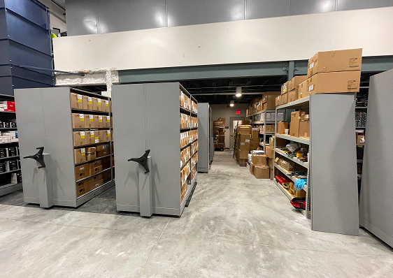 By eliminating fixed aisles, facilities can achieve higher storage density while retaining full access to stored items. With mobile aisles, shelving is mounted on wheeled bases that move along floor-mounted tracks, creating a compact storage layout with controlled, reliable movement. Each installation is designed around load requirements, inventory type, security needs, and facility workflow to support consistent performance and long-term durability. This solution is commonly used in commercial and government settings including armories, archives, warehouses, and records facilities.