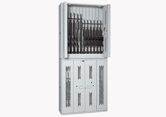 Rifle systems make the most of your weapon rack space while keeping rifles organized and accessible. Universal holders and adjustable barrel saddles accommodate carbines, full-length rifles, shotguns, or legacy platforms with optics, suppressors, or other attachments. Rack height and tier layout match weapon size and storage needs, letting rifles be stored single-tier or double-tier without limiting access or flexibility.